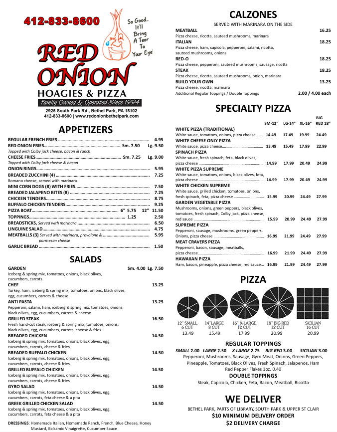 Whether you’re a pizza purist or a hoagie enthusiast, Red Onion promises a delightful experience that keeps you coming back for more. Try it once, and you'll understand why this gem has become a local staple.